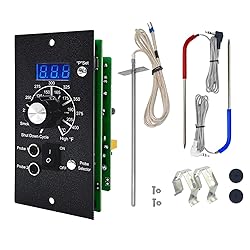 COMPATIBILITY:For Traeger Grill Controller Replacement for Grill Models BAC365/BAC236 compatibility. Seamlessly replaces factory parts on Pro Series 20/22/34, Texas Elite 34, Lil Tex 22, Junior Elite 20, Silverton 2019, Century 22/34, Ridgeland, Heartland, and Mesa grills. Note:Excludes Junior, Tailgater, Bronson models PID PROGRAM:Features 3 customizable PID programs to automatically adapt heat output for various grill sizes (225°F–450°F). Enhances temperature stability for consistent smoking/grilling results READOUT TEMPERATURE COMPENSATION: This grill control panel allows for temperature offset adjustments to match the grill probe temperature with the actual grill temperature PELLET-SAVING EFFICIENCY:PID-driven fan/auger modulation maintains precise heat levels while reducing pellet waste—ideal for extended smoking sessions COOL DOWN:15-minute automated cycle reduces risks of ash buildup, hopper flare-ups, and component damage post-cooking NOTE:Normal "puffing" sounds occur as PID cycles fan/auger to sustain temps—no performance issues INCLUDED: 1 x Controller,1 x RTD Temperature Probe Sensor,2 x Meat Temperature Probe, 1 x Instructions