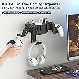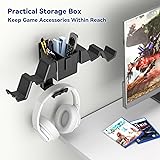 KDD Controller Wall Mount & Headset Holder, Universal Gaming Organizer Stand with Storage Box, Fits Xbox Series X/S, PS4, PS5, Switch, Steam, Gamepad Hanger for Headphones & Accessories