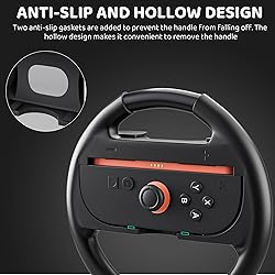 【High Quality】 The Switch 2 wheel grip is made of high-quality ABS material, which is shockproof, wear-resistant and durable. In terms of appearance, it is designed to simulate a wheel, and its size is more suitable for both hands. This not only alleviates the fatigue of holding the original controller during long gaming sessions but also brings you a more realistic racing experience. 【Anti-slip Design】 The switch 2 wheels for mario kart has added a fine matte anti-slip protective layer at the edge of the handheld part to prevent the embarrassing situation of hand dropping due to sweaty hands during long game conversations. The back is designed with raised parts based on the natural arc of the human palm, ensuring a comfortable grip and a seamless gaming experience. 【Perfect Fit】 for nintendo switch 2 wheel is cut one-to-one based on the Joycon, which can perfectly fit the controller. The inner edge of the groove is rounded and polished to prevent the controller from being scratched or damaged by friction. Two anti-slip sponge pads are added to fix the Joycon and maintain stability. 【Installation and Quick Release】 switch 2 wheel controller retains the quick release function of the controller's SL and SR buttons, ensuring synchronization with the game and eliminating any operational lag. The U-shaped slot opening makes it convenient to insert and remove the Joycon. Just align the controller with the two ends of the "+" and "-" poles, and the installation is complete. 【Convenience】 The switch 2 wheel set is designed to be lightweight and can be carried around in a backpack. It is small in size. Even when not in use, the handle won't take up too much space, making it convenient for storage. This exquisite and compact wheel grip is an essential accessory for all N-S2 racing game enthusiasts! It's a perfect gift for family and friends!