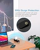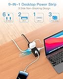 - Power Strip with Short Extension Cord6 widely spaced outlets and 3 USB charging ports, this power strip with USB can charge and power up to 9 devices at the same time. Build in smart charging technology, the desktop charging station can auto-detect your devices and provide optimized charging for cellphone, laptop, tablet. Easily plug in your PC, monitor, printer.Plug Type:0.35" Ultra Thin Flat Plug with 45° Right AngledUSB Ports:3 USB Ports ( 1 USB-C + 2 USB-A)AC Outelts:6 Widely AC OutletsUSB-C Outlet:5V/3A MaxUSB-A Outlet:5V/2.4A MaxUSB Output(Total):5V/3.1 AElectrical Rating:1875W/125V/15A/60HzCord Length:1-25 Ft Flat Extension CordSurge Protector Rating: 900 joulesProduct Size: 5.0*1.9*1.8 inch
