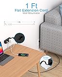 1Ft Extension Cord with Multiple Outlets, Flat Plug Power Strip Surge Protector with 1 Ft Cord, 6 Outlet 3 USB Ports (1 USB C), Multi Outlet Wall Plug for Travel, Dorm Room Essentials-Black