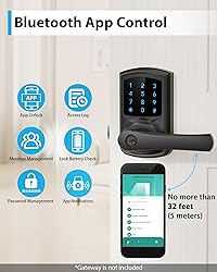 Flexible Access Options: This innovative smart lock combines the convenience of a door knob with keypad with multiple unlocking methods, including Bluetooth, app and physical key access. As a keyless entry door lock with handle, it eliminates the hassle of carrying physical keys while offering reliable backup options. APP Access Management:Within Bluetooth coverage (around 32 feet), Take control of codes management with our mobile app, check access logs and unlock the door lock. Remote Management: Generate one-time passwords for housekeepers or delivery workers remotely via an APP to improve home security and provide convenient access control for airbnb hosts. Easy Auto-Lock/Unlock Switch: Unlike other locks, our electronic door lock doesn't need any complicated programming. If you want to keep the door unlocked, just One-Touch On/Off Toggle for passage mode. It's convenient for gathering or moving things, and for quick in-and-out access in offices, hotel, bedrooms, garage, utility room, back/side door, apartment, where you need the door to stay unlocked. Compatibility: Digital door lock has adjustable latch to fit 2-3/8" (60mm) or 2-3/4" (70mm) backset. Fits standard US door opening 2-1/8" (54mm) door opening (does not fit 38mm door opening). Easy to install. Security: Our digital door lock with keypad is made of heavy-duty zinc alloy and features a premium and sturdy bolt. It will lock itself after five incorrect entries for intrusion alert, all of which enhance the security of the code door lock. Note: All settings for this door lock need to be completed through the mobile app.Door lock keyboard programming is not supported.
