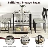 - This dining table set includes a 55 inch dining table, two chairs, and a bench. Two rows of glass shelves, wine racks, and storage racks are designed under the dining table for convenient storage of wine bottles, glasses, and snacks, making it an ideal choice for small-sized restaurants. Whether it's breakfast, coffee time, or family gatherings, we can meet your needs. Space saving, the dining table and bench adopt an integrated design, and the bench can be fully pushed into the bottom of the table, saving space while maintaining a sense of spaciousness. Especially suitable for small apartments or apartments, keeping your dining area tidy and orderly. Easy to assemble and clean, the dining table surface is smooth and can easily wipe off soup stains and sauces. The rounded table edge design avoids bumps and is safer to use. The set comes with detailed assembly instructions, simple and easy to assemble. If there are any problems, we are always ready to provide solutions. Durable and sturdy, stable and reliable, using high-quality MDF board and metal frame, with waterproof surface and long-lasting durability. Thickened table legs ensure stability, making daily cleaning easy and convenient, and keeping the dining table as new for a long time. Suitable for multiple scenarios,Not only can it serve as a comfortable dining area, but it can also transform into a desk to place laptops, books, and other study supplies, meeting your diverse needs and making space utilization more efficient.