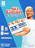 Mr. Clean Magic Eraser Original Cleaning Pads, Multi Purpose Cleaner, Bathroom Cleaning Supplies, All Purpose Cleaner, White, 6 Count (Pack of 6)