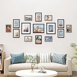 - 15 Pack Multi Sizes Picture Frames, Black, Brown and Dark Grey