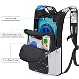 [Breathable Mesh Shoulder Straps]: Equipped with the ventilated mesh shoulder straps on this water backpack for air circulation, keeping you cool and preventing discomfort due to accumulated heat. This adjustable shoulder strap is made of silica gel, which is more comfortable to wear than cotton. Minimize pressure with its ergonomic design. This running hydration vest is lightweight enough to make it comfortable when running, hiking, cycling, biking, riding or marathon training [Leak-proof & Wide Opening]: The upgraded opening design of the internal bladder is fully leak-proof and keeps easy filling and cleaning. You must hear a "click" sound to ensure the water hose is securely installed [2L Large Hydration Bladder]: Includes a food-grade, BPA-free and odorless water bladder. Leak-proof performance is good with its thickened design [Insulated Bladder Bag]: You can put the ice pack into this insulated hydration bladder pocket to keep water cold for 4 hours, making you enjoy cold drink on the go [Ample Space]: This hydropack features 3 pockets like a water bladder pocket, a front zipper pocket and a main pocket for storing hydration bladder, towels, clothes, snacks, sunglasses, phone, keys. With the elastic cord, more hiking gear can be attached