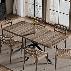 【Extendable Rectangle Dining Table Set】- Upgrade your space with MECHYIN versatile farmhouse dining table featuring a smooth silent rail system for effortless transformation. In its compact form 55.11” L x 31.49” W , this dining table seats 4-6-8 and doubles as a space-saving solution. Insert the included extension leaf to extend the length to 70.86”, creating a spacious kitchen table comfortably seating 6-8—ideal for gatherings. The innovative drop-leaf-inspired design makes it a functional transformer table for dynamic lifestyles. 【Durable & Sturdy Construction】- Crafted with premium MDF and a scratch-resistant, waterproof finish, MECHYIN wooden dining table combines farmhouse charm with modern resilience. Reinforced by black cross-metal legs and adjustable feet, the rectangle dining room table ensures wobble-free stability, and can support up to 500 lbs. Perfect as a daily-use dinner table or an expandable table for hosting, it balances minimalist aesthetics with industrial-grade durability. 【Multipurpose Design for Every Occasion】- Blending rustic wood-grain textures with clean lines, this kitchen & dining room table set adapts to any decor—from cozy kitchens to home offices. Use it as a casual breakfast table, a chic conference table, or a festive picnic surface. The modern rectangle dining table’s neutral style and practical size make it a timeless addition to multifunctional living spaces. 【Smart Storage & Easy Expansion】- Maximize convenience with MECHYIN space saving dining table’s hidden storage compartment under the tabletop—perfect for stashing small items, such as tableware, tablecloths or even board games. The collapsible drop-leaf mechanism tucks neatly away when not in use, maintaining sleek proportions. No clutter, no hassle—just quick transitions between intimate dinners and large celebrations. 【Stress-Free Assembly & Support】- Every extendable table includes labeled parts, tools, and step-by-step instructions for seamless setup. Backed by responsive customer service, we guarantee prompt solutions for any missing components or assembly queries. Elevate your home with this durable, stylish expandable kitchen table set—where functionality meets farmhouse elegance.