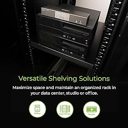 - Enhance your server rack's functionality with the IOGEAR GRSH02 Adjustable Depth Fixed Server Rack Cabinet Shelf. Engineered for durability, this 1U shelf supports up to 330 lbs, making it perfect for heavy-duty equipment like servers and UPS systems. Its adjustable mounting depth from 19.5" to 38.3" ensures a snug fit in various rack sizes, while the solid 27.5" shelf provides a stable platform for your hardware. TAA compliance makes it suitable for government and institutional deployments. The shelf comes with all necessary installation hardware, including M5 cage nuts, M5x12mm screws, plastic washers, and front and rear mounting brackets, facilitating a straightforward setup.