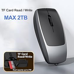 【 Not Only a Mouse】This tiny mouse integrate with TF card write and reader function.With our data cable,you can implements data tranfer to your computer,tablet,moble phone.Pls note,the TF card max support 2TB capacity. 【Extrem Tiny Mice】This mouse only has a size of 7.8*3.8*2.2 cm,weight 26g.It is very convenient for travel,kids and also can be used as gift product. 【Bluetooth Connection】Press the bluetooth button 2-3 seconds to pair bluetooth with your device . This button is also used as resolution adjustion button.Short press it to adjust the resolution from 800-1200-1600. 【Built in Rechargeable Battery】Built in 120mAh lithium-ion battery ,you can charge it with our USB C- USB C charge cable. 【Unique Lanyard Design】The data cable (charge cable ) is designed as a Lanyard. You can carry the mouse anywhere without worry about charging cable or data cable .