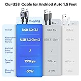 - Android Auto USB Cable 1.5ft 2Pack10Gbps/3A USB 3.2 Gen 2 Cord Data Transfer & Charging USB Type C Car Carplay Cord for iPhone 17/16/15 Galaxy S25/24 Pixel 9/8/7 External SSD Laptop Tablet