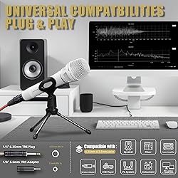 CLEAR VOCAL MICROPHONE - The SonixForce dynamic microphone offers a cardioid polar pattern. With the sensitivity of 2.5mV/Pa and a 40Hz-16kHz frequency response range, it precisely captures vocal sources while minimizing background noise and feedback reproducing. To ensure a clear vocal sound without distortion RUGGED & ERGONOMIC - A zinc die-cast body and reinforced steel mesh windscreen deliver all-metal toughness that ensures long-lasting performance of this XLR microphone. Balanced 300g total weight to simulate natural handshake inertia which very sturdy and smooth in the hand. Built-in pop filter and anti-shock grip minimizes handling noise IDEAL AUDIO SOLUTION - XLR to 1/4" cable of this wired microphone adopts upgraded spiral copper core and tin foil shielding, which providing balanced audio to ensure minimal signal loss and improve signal transmission. Additional included a 6.35mm to 3.5mm Adapter which effortlessly connect to Speakers, Mixers, AMPs, PCs, TVs, and DVDs PLUG N PLAY & EASY TO USE - No charging needed, no signal drops, makes this singing microphone ideal choice for any live vocal applications and recording amplified instruments. An external switch on it for easy control of audio. While the high-grade audio cable resists tangling and interference to frees you up to stroll around VALUE-PACKED - Our XLR mic comes with a 16/ft XLR to 1/4" audio cable, 3.5mm TRS adapter, storage bag and a tripod stand. This vocal microphone perfect for singing, karaoke, public speaking, weddings, parties, meetings, performance and more. SonixForce dynamic mic might be the one for you
