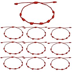 - Red String Bracelets,7 Knots Red Bracelets Each bracelet designed with 7 knots, and with vibrant red color, there's string at each end that you can stretch the size, so it's very easy to wear.Wearing the string bracelets brings you protection, success and good luck. It will be a great amulet for you. These adjustable red cord bracelets have some good meanings, lovers give them to each other on behalf of happiness and romance, friends wear them on behalf of friendship, family members wear them on behalf of peace and luck, and they can bring you positive energy. Specifications: Material: Woven rope Color: Red Quantity: 10pcs Size: Adjustable Package Included: 10Pcs*Red String Bracelet