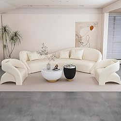LyckTre Modern Sectional Sofa Set, High-Density Cushions, Solid Wood Frame, Leather Sectional Couches for Living Room, Couch Sets with Coffee Table (White Sofa + 2 Chairs + Coffee Table,83IN)