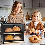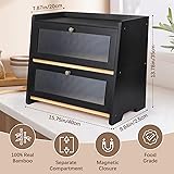 🪵OUR WOODEN STORAGE BOX IS AN EXCELLENT CHOICE - Bread Container For Long-Term Use! Crafted from high-quality, food-grade bamboo, this bread box for kitchen countertop is free from harmful chemicals, paints, or glues that could seep into your food. The thickened wood board ensures strong load-bearing capacity, resisting deformation or cracking even with long-term use. Smooth sanded surface prevents scratches on your hands or countertops. It also adds a warm, natural touch to your kitchen decor, blending seamlessly with modern, farmhouse, or traditional styles. 🌾CORNER BREAD BOX TO KEEP BREAD FRESH LONGER - Equipped with a magnetic-sealed door, this bread storage container locks in moisture to prevent bread from drying out, keeping your bread soft and fresh for up to 5 days. Crafted from premium bamboo, this breathable bread box corner countertop naturally regulates humidity. No more wasting money on moldy or rock-hard bread—this corner breadbox preserves the taste and texture of your favorite loaves, so you can enjoy fresh slices every morning. 🥖DOUBLE LAYER WOODEN BREAD BOX FOR MAXIMIZE COUNTERTOP STORAGE - This bread box for homemade bread features a smart double-layer design that doubles your storage space without taking up extra countertop area. Keep your kitchen organized and clutter-free—no more messy bread bags or crushed pastries. It fits most standard kitchen countertops, making it ideal for small apartments, families, or anyone who loves fresh bread daily. 🏡✨KITCHEN COUNTER DECOR ELEVATE YOUR KITCHEN DECOR - It’s not just a breadbox for kitchen countertop—its elegant design acts as a decorative piece, elevating your countertop aesthetic. The compact size fits perfectly on most kitchen countertops without taking too much space, and the raised bottom (0.8-inch height) keeps the box away from wet surfaces, preventing water damage and keeping the interior dry. The black kitchen decor tone pairs beautifully with white cabinets, stainless steel appliances, or colorful kitchen accents, adding a cozy, homey vibe that guests will notice. 🍞GREAT BAMBOO BREAD BOX FOR GIFTING - Meticulously crafted for unforgettable gifting moments - birthdays, housewarmings, weddings, or just because - this premium bread box arrives in elegant, gift-ready packaging that impresses at first sight. Gift receivers will appreciate the extra counter space and how it keeps bakery staples accessible yet tidy, turning a thoughtful gesture into a daily essential they’ll thank you for. A Gift You Can Feel Good About Giving. Gifts for Women Mom Wife. 🌿EASY TO ASSEMBLE AND USE - This double-layer countertop bread box comes with all the necessary hardware and clear, step-by-step instructions, so you can assemble it in just 5-10 minutes—no special tools required. It’s also compact enough to fit in small kitchens or limited countertop space, making it a practical choice for any home. Plus, the natural wood is easy to clean—just wipe it down with a damp cloth to remove crumbs or stains. Vintage kitchen decor. Farmhouse kitchen.