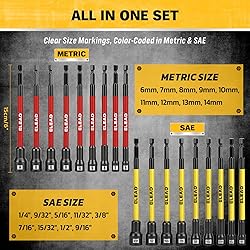 - Engineered for professionals and DIY enthusiasts, the magnetic nut driver bit set delivers unmatched durability and versatility. With 35 extra-long pieces in SAE, Metric, PH1 and PH2 sizes, it handles automotive, household, and mechanical tasks with ease. Premium Chrome Vanadium steel and black phosphate coating resist wear and corrosion, while the 1/4" quick-change hex shank and strong magnetic hold ensure seamless performance. Includes a durable storage case for ultimate convenience.