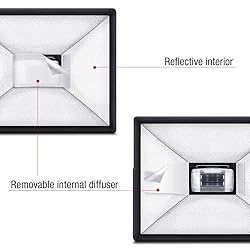 【SOFT, FLATTERING PROFESSIONAL LIGHT】Transforms harsh flash into evenly diffused illumination, reducing shadows and creating smoother skin tones for portraits and events. 【ENHANCED LIGHT CONTROL SYSTEM】Highly reflective interior with removable internal diffuser maximizes light spread while maintaining balanced, natural-looking results. 【UNIVERSAL & QUICK FIT DESIGN】Adjustable Velcro strap securely attaches to most DSLR speedlite flash heads for fast, hassle-free setup. 【FOLDABLE & TRAVEL-READY】Collapsible structure folds flat and stores neatly in the included protective pouch—ideal for weddings, location shoots, and travel. 【DURABLE PERFORMANCE BUILD】Premium reflective materials and reinforced stitching ensure reliable, consistent lighting session after session.