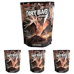 The information below is per-pack only DEER ATTRACTANT - Looks like dirt; tastes like molasses; attracts like crazy! Deer will love the aroma of dried molasses, and you'll love the habits they form looking for it; Top-quality deer feed from Evolved Habitats with pellet-sized protein VISIBLE TO DEER UNSEEN BY THE HUMAN EYE - The Dirt Bag deer supplemental food from Evolved Habitats virtually disappears to the human eye, but deer can see it thanks to Glo-Cote UV enhancement technology HIGH PERFORMANCE - The Dirtbag deer attractant with molasses flavor promotes overall herd health and helps grow bigger and stronger bucks; This deer feed includes 17% Protein, 14% Fat, 13% Fiber, 1.5% Calcium; 1% Phosphorus BEST CHOICE FOR AVID HUNTERS - This dirt-colored deer attractant is habit-forming to keep deer coming back and creates camera action and heavy hoof traffic; Super potent aroma attracts deer over long distances HOW TO USE - Clear all debris in a 4-foot diameter; Once the ground is cleared, rake the soil to loosen and make slight depression in the site; Spread the contents over the site; For instant results, wet down the site with a gallon of water after applying With a color and texture resembling dirt, UV enhancement and the aroma of dried molasses, Dirt Bag is appealing to deer's eyes and nose Easy to use formula 5lb bag of mixture
