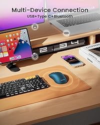 Connect up to 3 Devices: This compact wireless mouse features Bluetooth, USB and Type-C connectivity, supporting simultaneous connection to three different devices. The Type-C and USB receiver are housed within a dedicated compartment on the back of the mouse. Take it out and plug it into the port of the device separately. You can switch between connected devices with a single button Rechargeable & Energy Saving: With built-in Lithium Ion battery, the bluetooth mouse can be charged via the included cable, convenient for you to charge it anytime, anywhere. Charging 2 hours, can be used for 15 days, standby for 200 days. The portable mouse will enter sleep mode after a few minutes of inactivity Adjustable DPI & High Performance: 1000/1600/2400 DPI levels provide higher sensitivity for precise and smooth tracking, easily track over a variety of surfaces; With the backward and forward buttons, you can easily navigate websites and increase work efficiency. Quiet Click & Slim Design: Silent/quiet click mouse with ergonomic design offers your hand maximum support and comfort and do not need to worry about disturbing others. It can be a perfect travel mouse with slim design. NOTE: The middle scroll wheel is not quiet Wide Compatibility: Well compatible with Windows7/8/10/XP, Vista, Mac OS X 10.10 or later. Fits for all Type-C devices, tablets, cellphones, Macbook, Macbook Pro, iMac, iMac Pro, Chromebook and more