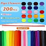 200 Pcs Pipe Cleaners, 20 Colors Creative Chenille Stems Pipe Cleaners Craft, Fuzzy Pipe Cleaners Bulk for Crafts, DIY Pipe Cleaner for Home Arts and Crafts Decorations Supplies