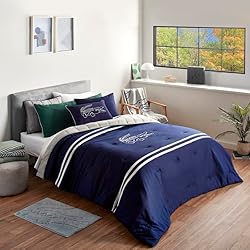 100% Percale Cotton Complete Set: Includes one king comforter and two matching pillow shams (one sham for Twin size). Shams feature hidden zipper closures for a sleek look. Premium Cotton Percale: Made from 100% percale cotton with a 180-thread count for a soft, breathable, and durable night’s sleep. Signature Lacoste Style: Iconic Croc logo featured on both comforter and shams, delivering genuine Lacoste quality, style, and comfort. Reversible Design: Comforter and shams are fully reversible, offering a solid background for versatile styling. Easy Care: Machine washable for convenient cleaning. Wash cold, tumble dry low. Safe for skin, durable material, percale weave.