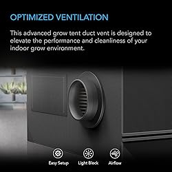 - Product DescriptionThe Advanced Grow Tent Duct Vent is designed to elevate the performance and cleanliness of your indoor grow environment. Engineered with a dual-layer system, these vents effectively block insects, dust, lint, and debris—while maintaining high airflow to support healthy plant development. Built for growers who demand efficiency without compromise, this essential accessory ensures your grow tent remains sealed, secure, and optimized for climate control.Seamless IntegrationEach vent features a precision-molded duct adapter that makes connecting to intake or exhaust systems effortless, with a twist-on design that attaches seamlessly to standard 8-inch duct ports. Integrated shades and a light-filtering mesh prevent light leaks from overhead fixtures, helping preserve dark cycles and maintain photoperiod consistency.Versatile VentilationWhether you're running a passive intake system or expanding airflow capacity, these vents open smoothly to allow for additional air exchange—perfect for scaling your ventilation setup as your plants grow. Crafted for durability and ease of use, the Advanced Duct Vent is the smart solution for growers looking to keep their tents protected and performing at peak potential.