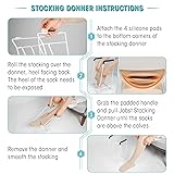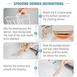 Say Goodbye to Sock Struggles: Our sock aid device empowers you to put on your stockings independently without bending or assistance, eliminating the need for assistance, Designed specifically for seniors and those recovering from surgery Perfect Fit for Large Calves: Our stocking device is specifically tailored for Large calves (circumference between 18" - 20"). The carefully measured dimensions ensure a comfortable, secure fit without pinching or discomfort Upgraded Curved Design: Newly enhanced curved frame design allows your sock to slide onto the device with remarkable ease. The smooth, Tilted curve guides your stocking into perfect position every time, reducing application time and minimizing strain Premium Materials for Maximum Durability: Stocking device constructed from corrosion-resistant iron, not prone to bending or warping. The premium rubber insulation provides exceptional comfort and grip. Silicone pads prevent scratches and ensure stability during use Everything You Need for Easy Dressing: Your purchase includes: 1 large stocking donner, 4 silicone pads, and 1 pair of gloves for added grip when handling your compression stockings. It's all the support you need to maintain your independence every day