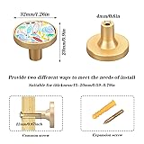 - Specification Material: acrylic plate (surface) + zinc alloy (structure) + screws Drawer knob size: 1.26x1.26x0.9 inches (32x32x23mm) Screw size: Common screw-0.87 inch (22mm) / Expansion screw-1.18 inch (30mm) Printing description: surface printing, other parts fixed gold color Features: rust-resistant and durable, beautiful pattern, easy to install. Package Includes: Cabinet knob *4 + mounting accessories (common screws + expansion screws) *4 Applicable Scene Ideal for drawer cabinets, door cabinets, bookcases, etc., living room/entrance door/bedroom/foyer can also be used. Attention The product is made of metal, not washable, can be wiped to avoid rust and other problems. The product is made of metal, more hard, the installation process, please standardize the use, pay attention to safety. Expansion screws are only applicable to part of the wall. Part of the product acrylic surface with adhesive, alcohol wipe can be removed. Service We aim to provide you with high quality products, if you are not completely satisfied with your purchase please feel free to contact us, we can give you an exchange or full refund, no questions asked.