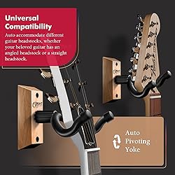 - Elevate Your Guitar Display with the ClefArc Guitar Wall Mount Transform your space and showcase your instruments with the ClefArc Guitar Wall Mount.This natural beauty, combined with reinforced heavy-duty metal construction, ensures both security and style for your guitars. Product Information: - Material: Solid Hardwood, Reinforced Heavy-Duty FE Metal, Nitro-Safe Composite Tube Coating - Weight Capacity: Up to 35 lbs - Included: 2 Guitar Hangers 6 Celluloid Guitar Picks (0.46mm*2, 0.71mm*2, 0.96mm*2) 4 Drywall Anchors 4 Concrete Wall Anchors 1 Drilling Position Assistant 1 Installation Instructions Upgrade your guitar display with ClefArc’s premium guitar wall mount, combining elegance, durability, and universal compatibility. Embrace natural beauty and secure your instruments with confidence.