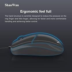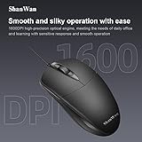 ShanWan High Performance Wired Mouse, 1600DPI high-Precision Optical Engine - PC Computer and Laptop Compatible - Black