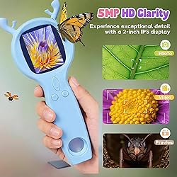 【Antler shape microscope】: The unique antler shape is an excellent gift for Christmas. This handheld electron microscope for kids boys girls equipped with a 2 inch IPS screen and 1080P HD digital imaging technology, Handheld digital microscope can help you to see vivid microscopic images and fascinating video in real time, ensuring no latency. 【Handheld microscope】: With 500x magnification and 4x zoom adjustment knob, this kids microscope provides extraordinary clarity, allowing you to look more closely at intricate patterns on ladybirds, bee wings, plant veins, coins and fibers in tissues and embark on an exciting journey of microscopic exploration. 【Digital microscope】: Makes it easy to capture exciting moments, record observation surprises, and the other side of the physical magnifying glass allows you to easily view the small objects around you at any time. Note: Do not point the illuminated lens towards your eyes. 【Multi functional microscope】: Support for photography and video recording (TF card not included),Several puzzle games.It also comes with a USB cable to transfer photos and videos to your computer. 【Inspire curiosity gift】: This deer element Microscope is a unique gift that not only brings joy to kids, but also stimulates their scientific interest and creativity. This Digital microscope for boys girls kids childrens teenergers as xmas gifts birthday gifts holiday gifts.This is the perfect gift for Christmas,Birthdays and Holidays.Perfect for giving gifts on holidays such as Christmas and Thanksgiving, as well as birthdays, graduation ceremonies.