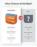 Smart relay switch with Bluetooth repeater, Matter compatible: easily control devices directly with Alexa, Apple Home, Google Home or SmartThings (requires a compatible speaker). The integrated Bluetooth repeater supports networking of up to 10 SwitchBot Bluetooth subdevices and ensures seamless connectivity. Note: add the device to the SwitchBot app, then go to Matter add mode in the device settings menu 【Makes old devices smart instantly】Compact device (4.2 x 3.7 x 1.6 cm), fits most switch boxes and sockets without rewiring. Fast 10 minute installation for remote control and automation of light, fans, heating and air conditioning. Monitor energy consumption: relay switch 1PM allows you to control a circuit and monitors precise energy consumption and performance, with detailed graphics. SwitchBot provides 1 year free app data storage to analyze and manage energy consumption. Versatile control options: connection via WLAN without hub for remote control via smartphone. In case of internet failure, local control via Bluetooth. Matter protocol allows direct connection to Alexa, Apple Home, Google Home, and SmartThings for voice-controlled, hands-free operation. Adjustable smart scenes: automatically turns on the lighting when door opening or movement (SwitchBot sensor required) and turns off the hallway lighting at a preset time. In combination with SwitchBot meter, garden watering can be automated based on temperature and humidity. Safe and reliable: V0 flame retardant housing with overtemperature and overload protection disconnects the power supply in emergencies. After failure, the switch will restore the previous state. With ESP32 processor for improved communication, data transfer and efficient control.