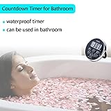 【Waterproof Shower Timer】: FCXJTU shower timer is designed with an IPX7 waterproof rating, allowing it to function properly even when fully submerged in water for a short period of time. It is useful not only for shower timer in the bathroom, but also for studying, exercising, cooking, and outdoors. It can serve as both a timer and a clock 【12/24H Shower Clock】: This shower clock timer can be 12/24H mode Clock. You can easily switch to what you need. The shower timer has large digital lcd display screen clearly shows the remaining time and mode, making it easy to read from a distance 【Multifunctional Mode】: This shower clock timer has countdown timer, count up timer and clock mode. This digital timer has magnetic back, retractable stand, and a hole for hanging. You can take this pocket size timer anywhere. Stick it on the fridge surface, pull out the retractable stand for table-top use, or run a string through the hole to hang it 【Easy to Use】: This waterproof countdown timer can measure up to 99min 50sec. The shower clock timer has 3 quickly adjustable buttons (10min/1min/10sec). You can switch the timer to a clock with just one button. The timer is easy to set and use. Press the button to switch the mode, and then press the button to set the countdown time 【Audible Alarm】: The bathroom timer is made of durable plated material. A gentle alarm sounds when the timer reaches zero, signaling the end of the shower. The alarm continues for 15sec and conveniently turns off automatically. FCXJTU countdown timer operates on 1 CR2032 battery, which is contained in the timer