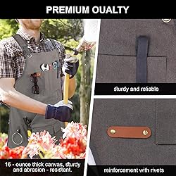 【High-quality thick canvas material】The apron is made of thick canvas by handcrafting, which is durable and stain-resistant, It is breathable and odor-free, It is equipped with adjustable straps (S-3XL) for customized comfortable wearing experience, It eliminates neck pressure, It is suitable for both men and women and meets the needs of oversized body types. Superior Reinforcement Details】The four corners of multiple tool pockets are reinforced by metal rivets, After undergoing 30+ tension tests, it has been verified to be effective in preventing fabric tearing caused by tool overload, It meets the durability requirements for high-intensity operations such as carpentry and welding. 【Comprehensive Protection Design】Tool apron with 31.7-inch extra-long front hem and 27.7-inch wide-cut design, the three-dimensional wrapping structure that extends from the chest to the knees can effectively prevent welding sparks, wood chips splashing, garden soil and paint stains from penetrating. 【Versatile Profession Adaptation】This thick canvas apron is made of tough yet flexible material. It is widely used in various professional fields such as men's barbecue, carpentry, electrical work, mechanics, repairmen, lathe operation, gardening cultivation, auto repair workshops, garages, DIY artisans, etc. It is suitable for over 20 professional fields. Reliable Quality】This professional tool apron can be used as a creative gift for Christmas/Sanctuary Day/Professional Commemoration Day, Anniversary Day, Thanksgiving Day, Easter, Christmas, etc., for those who love handicrafts. Our apron is durable and comfortable to wear, and it is a wise choice for anyone seeking a reliable work uniform.