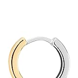 - Simple and sleek best describes these Amazon Essentials fine silver plated two-tone 17mm huggie hoop earrings. Earrings are crafted in 14K gold over brass and fine silver plating over brass, 17mm in length and have a click-top closure. With the simple design, these hoop earrings can be worn with any wardrobe choice.
