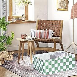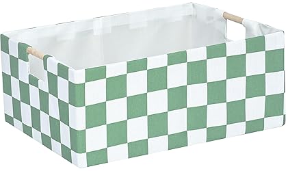 - Measures: 16.9 Inch x 12.5 Inch x7 Inch. foldable storage bin are made of top-grade lightweight eco-friendly linen fabric, with a 2 mm pressboard base insert to maintain shape and strength. Large enough to organize lots of household and personal goods Durable Carrying Handles: strong wooden handles make the linen fabric storage basket easy for you to carry heavy loads, while the superior fabric quality ensures that the box has the strength to bear. These foldable boxes are both functional and decorative, strong and elegant. Multi- purpose of the shelf basket: Ideal storage containers for organizing magazines & books, kids toys, office supplies, baby products, diapers, clothes, socks, towels, toiletry storage, Making your home more tidy and orderly. Collapsible closet storage bins:You could simply fold it up when you don't use it or when you need it for travel use.There are stiff cardboards inserted in the bottom and all side walls for support allowing these storage bins to stand on their own even when empty. Quality commitment: If for any reason you are not satisfied with your purchase, please contact us. We provide 100% Satisfaction for risk-free shopping