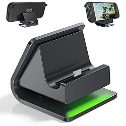 Compact & Portable Design:Specifically designed for Nintendo Switch 2 only. Lightweight, small, and easy to carry, this charging station is perfect for travel, tabletop gaming, or any on-the-go setup. Enjoy convenience without compromising stability. Fast & Safe Type-C Charging:Charge quickly via the Type-C port with built-in smart chip technology. Features overheat, overcharge, and overvoltage protection to ensure safe and efficient charging every time. Stay powered up without worry. Perfect 74.35° Viewing Angle Stand:Doubles as a fixed 74.35° angle stand for optimal viewing. Place your console on the dock and enjoy tabletop gaming comfortably without neck strain. The fixed angle provides one of the most ergonomic positions for extended play. Colorful LED & Anti-Slip Base:The dock features a seven-color LED ring that can be adjusted to your preference, adding a fun touch to your gaming setup. The anti-slip base ensures stability while charging—no need to worry about accidental knocks or falls. Portable Console-Only Use:Designed for portable play only—TV output is not supported. Ideal for tabletop or handheld mode, making it a convenient and stylish accessory for Switch 2 owners on the move.