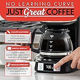 Set & Forget Convenience – Program Brew Later up to 24 hrs so a fresh pot greets you on your schedule Perfect for Small Spaces – Slim 9”D x 6”W x 10”H size and lightweight 3 lb build brew 5 cups—great for apartments, offices & dorms Adjustable 4-Hour Keep Warm + Freshness Timer – Customize the hot plate from 30 min–4 hrs while the timer tracks brew age for peak flavor Pause & Serve Mid-Brew – Sneak a mug without spills thanks to auto-stop drip, preventing over-extraction and saving time EZ-View Water Window – Fill accurately and brew consistently with the clear reservoir, #2 cone compatibility, and dishwasher-safe glass carafe