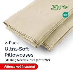 - Upgrade your bedding with this KING PILLOW CASES SET OF 2, crafted from premium brushed microfiber for a smooth, gentle, and airy feel—perfect for year-round comfort at home, in hotels, hospitals, or guest rooms. MADE IN GREEN by OEKO-TEX: independently tested for harmful substances (STANDARD 100) and produced in environmentally friendly, socially responsible facilities for lasting comfort and quality. A secure envelope-style closure keeps pillows neatly in place without zippers or buttons for a clean, tailored look. The durable fabric is fade-, shrink-, and wrinkle-resistant to maintain its color and structure through frequent washing—ideal for everyday use in high-traffic settings. Easy care: machine wash cold and tumble dry low to keep your pillowcases fresh and comfortable.
