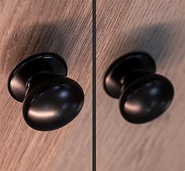 SLEEK & SCULPTED: Featuring a bold dome top and a wide base, these mushroom knobs offer a refined, balanced silhouette with timeless elegance. Their classic design effortlessly complements a range of interiors—from vintage and rustic to traditional styles. BLACK SATIN: A satin finish—slightly glossier than matte—adds subtle texture and a refined, understated look, while resisting smudges and fingerprints for a clean, elegant touch. ERGONOMIC: Large closet knobs with a 1-3/5 inch top diameter/1-2/5 inch height/1-3/5 inch base diameter and a heavy weight of 175g each (SIX times the weight of standard knobs), providing a luxurious or upscale look to your cabinetry. ERGONOMIC: Large closet knobs with a 1-1/2 inch top diameter/1-1/3 inch height/1-1/3 inch base diameter and a heavy weight of 105g each (THREE times the weight of standard knobs), providing a luxurious or upscale look to your cabinetry. DURABLE: constructed by solid die casting zinc , and polished surface with oil coasted ensure durability and stainless purposes