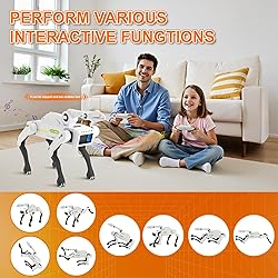 🤖30+ Lifelike Actions: Watch your robot pet perform Kung Fu,Clip, handshakes, somersaults, and hilarious "pee attack" pranks! Control via English voice commands & Remote Control—perfect for creative play and family fun. 💻STEM Learning & Custom Programming: Spark creativity with coding mode! Kids can design custom action sequences, building logic skills while playing—an ideal gateway to robotics for ages 6-12. 🎮Remote control & Voice Commands: Not only can it be controlled by remote control, but also by voice control. Equipped with USB-C fast charging (full charge in 1.5 hours) and a 600mAh battery that delivers 6-hour runtime. 🔒Durable & Kid-Safe Materials: Crafted with gentle, non-toxic ABS plastic featuring ultra-smooth surfaces.Auto-shutdown protects motors during collisions—perfect for birthdays, holidays, or everyday adventures! 🚀Beyond Basic Robot Toys: Unlike cheap $30 gadgets, this robot dog features precision motors, 600mAh battery—grows with your child for years of smart play!