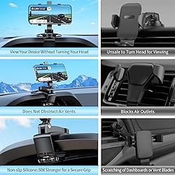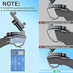 1️⃣ Multi-Purpose Mounting for Car & Daily Use-- This universal phone holder seamlessly adapts to car dashboards, rearview mirrors, sun visors, desks, or shelves, offering hands-free convenience for navigation, video calls, or entertainment. Its foldable design ensures easy storage, while the spring-powered clip allows quick transfers between vehicles or indoor surfaces—ideal for drivers, passengers, or home/office use. 2️⃣ 360° Rotation + 180° Tilt for Glare-Free Clarity-- Engineered with 3-axis rotation (X/Y/Z), this mount adjusts your phone to horizontal/vertical screens and tilts 180° for perfect visibility, eliminating blind spots or glare. Switch effortlessly between driver navigation and co-pilot movie-watching angles, or fold it flat to save space when unused—optimized for safety and comfort. 3️⃣ Premium Anti-Scratch Materials & Secure Grip-- Crafted with heat-resistant ABS plastic and soft silicone pads, the mount protects your phone and car interior from scratches. The four retractable clamp arms (fits 4–7” phones, ≤0.4” thick) feature anti-slip grooves, while the reinforced spring base ensures a vibration-proof grip, even on bumpy roads. 4️⃣ Universal Phone Compatibility-- Designed for most smartphones (4–7” screens). The expandable clamp jaws (up to 3.74”/95mm) securely hold devices with cases, ensuring broad compatibility across brands and models. 5️⃣ Dashboard-Friendly Design with Clear Requirements-- Specifically built for car dashboards with an edge thickness <2” and depth >2”, this mount’s curved silicone base grips securely without slipping or residue. Verify your dashboard’s dimensions before purchase to ensure a snug fit, guaranteeing stable, shake-free performance during drives.