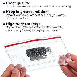 Package Contents: you will get 10 pieces of Flash Drive Holder for 3 Ring Binders , which are very convenient and sufficient in quantity to better meet your daily needs Suitable Size: each 3 ring binder plastic sleeves measures approximately overall size: 3 5/8" X 5 ½"; Internal capacity: 2 1/8" x 5 1/8",closed design prevents items from being lost Quality Material: flash drive zipper case for 3-ring binders is made of crystal clear 8-gauge vinyl; This binder usb holder is reliable, tear-resistant, and safe to use for long-term, the waterproof material protects important documents from corrosion Easy to Use: Instead of exposing your flash drives to dust, dirt, and the elements, use USB flash drive zipper cases to protect them. These pockets have two holes and are compatible with three-ring binders. The resealable red zipper keeps dust out Transparent Plastic Construction: these flash drive holders bulk are also great for storing CDs or DVDs, and lanyards, wires and other materials, clear plastic, intuitive identification without opening, a portable business solution for home, office and professionals