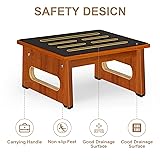 - One Step Stool :Non-slip Tread Surface : Our wooden step stool has a larger surface of 15.75 inches x 12.60 inches.it is covered in a non-skid rubber to help reduce slips when stepping up or climbing down. besides, and there are anti-slip pads under the stool. which is vital for children and elderly safety More Than One Function : Available for outdoor and indoor use, as a step stool for getting in car, door entrance steps, kitchen step stool, bathtub step stool, toilet step stool, bedside step stool or footrest step. of course, the step stool is perfect as a gift to show you care.