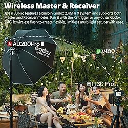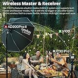 【TTL Auto-Exposure】: The iT30 Pro's TTL mode meters light through your lens in real time andinstantly calculates the optimal flash output-whether you're just starting out or you've been shooting for years,you'll get perfectly exposed images every time. Enjoy consistently balanced results in any lighting scenario and focus on your creativity,not your settings. 【2.8” Full-Color Touchscreen】: The iT30 Pro features a responsive 2.8" touchscreen that lets you swipe through settings and adjust power with just a tap-perfect for on-the-flytweaks.Prefer tactile feedback? The traditional rotary dial lets you fine-tune flash output exactly the way you like. 【Wireless Master & Receiver】: The iT30 Pro features a built-in Godox 2.4GHz Xsystem and supports both Master and Receiver modes. Pair it with the X3 trigger or any other Godox 2.4GHz wireless flash to create flexible, limitless multi-light setups with ease. 【Advanced Features,Pro Control】: Supports 1/8000s high-speed sync, front/rear curtain sync, multi mode, and flash exposure compensation.(The"S" version adds global-shutter flash sync up to 1/80000s on Sony cameras.) 【Travel Light, Shoot Big】: Roughly one quarter the size of a traditional speedlight and weighing only 120g, the iT30Pro slips into any bag-ideal for on-location work. 【Built-in Diffuser】: With a quick flick of the lever, the iT30 Pro's built-in diffuser drops into place to deliver wider coverage and beautifullysoft,even lighting-flattering every skin tone without the need for extra modifiers. 【Quick Mount,Quick Release】: Redesigned quick-release foot lets you lock or remove the flash in a single press-speeding up your workflow on every shoot. 【Shoot All Day WithoutPower Worries】: With a 1.5-second recycle time and up to 560 full-power flashes per charge, you can shoot from dawn till dusk without pause. 【Charge Anywhere,Create Anytime】: The lithium battery supports USB-C fast charging, so you can easily top up between shoots-ready for the next shot in no time.