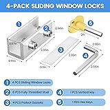 🔓【Measure Your Window Track】Window locks are suitable for sliding windows, sliding doors and vertical windows. Before ordering window locks, please measure your window track size, the width is less than 0.39 inches and the length is greater than 0.31 inches. The window locks come with a vertical key and can be applied to the middle track of the window. 🔓【Double Lock Design and Protective Washer】2024 latest upgraded protective design, each window lock has two fixing holes, which greatly enhances the holding power of the lock. You can tighten the lock clockwise with the included hex wrench to easily fix the window/door or allow ventilation. At the same time, in order to prevent your window track from being scratched, each of our window locks is equipped with a protective washer, which also enhances the friction between the window lock and the window track, improving stability and security. 🔓【Two Keys for Easy Installation】Our window lock offer two mounting options for different widths of window track.Each set of window locks comes with a hex wrench and a vertical wrench. Choosing the one that best suits your needs to prevent scratching or protect your window track and improve the stability of your installation. Both methods are easy to install.No additional installation tools or drilling required,3-step quick installation.step1,place the lock to a suitable position.Step2,Insert gasket protect window track from scratches.Step3,tighten the screws,done!you can easily fix the window lock at any part with the vertical key or hex keys,easy to reuse and re-install. 🔓【VERSATILE USABILITY】This upgraded window double lock is made of solid and reliable aluminum alloy with exquisite workmanship, is more secure, and can serve you for a long time using.Our sliding window security locks are widely used in a variety of situations, including homes, apartments, hotels, offices and more. The window lock can freely control the sliding window to partially open or completely close, preventing children or pets from accidents, preventing burglars and thieves from trespassing, the security window locks can provide you with more safety protection. 🔓【What's You Get】4 security window locks, 4 mounting hex keys,4 protective gaskets, 1 vertical key for mounting to center track.Great thanks for choosing us and we care about the customer's purchase satisfaction.If you have any questions while using,just feel free to contact us,we will reply to you within 24 hours and surely offer you a satisfied solution.