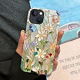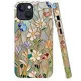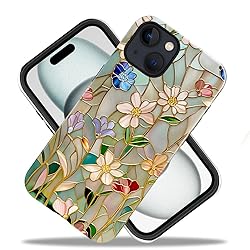 TnXee Case Compatible with iPhone 15,Fall Prevention Bright Hybrid 2-Layer Hard Shell Phone Case for Girls Boys,Stained Glass Bloom Flower