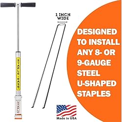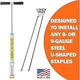 MADE IN U.S.A. - Install staples right in half the time while standing up! Staple Ease is PROUDLY made in the U.S.A. LARGE GAUGE U-SHAPED STAPLES: Each tool is designed to install a specific staple. This unit is designed to install 8 or 9-gauge U-shaped steel staples that are 1 inch wide. 11-gauge staples are too thin for this driver to work properly. Staple Ease was built to install the commonly sold and used staples on the market. No special staples! Choose the tool that works for you and expect to save your back and labor expenses while getting staples installed into any ground condition. BACK SAVER: Save your back from bending over repeatedly! Get more done by reducing the amount of time stapling and focusing on more lucrative jobs! QUALITY CONSTRUCTION: Stainless steel rod, solid aluminum handle and engineered plastics mean that this tool is built to last.
