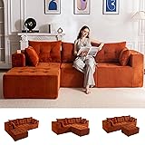 MAXYOYO Modular Sectional Sofa Couch, L Shaped Modern Cloud Couch with 1 Ottoman, Sofa in A Box, Tufted 4-Seat Boneless Sleeper Chair for Living Room, No Assembly Required, Orange