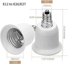 - E12 to E26 bulb socket adapter, converts candelabra E12 socket to standard E26 socket. Save you money and time to find E12 bulbs when you only have E26 bulbs. Parameters: Maximum Wattage: 200W. Input Voltage Range: 110-250V.
