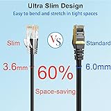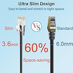 【10G High-Speed Performance】Cat6a patch cable supporting up to 10Gbps speeds and 550MHz bandwidth for high-speed networks. Ethernet patch cable has excellent speeds and connectivity, fast transfer of streaming and data without loss. Cat6 patch cables perfect for home networking, office environments, and data centers gigabit network setup. 【Ultra Slim Design】Slim ethernet cable made of 28AWG pure copper. Slim cat6 patch cable is about 60% of standard ethernet cable thickness. Ultra-slim design make the cable to bend and stretch at will in tight spaces. The thickness of Cat 6 patch cable 10ft doesn't compromise the ability and provides reliable network transmission. 【Soft and flexible】Slim patch cables are very soft ,can be bent in any direction, making short or long distance wiring easier. Thin cat6 patch cable are also very flexible, making it easy to fit them into tight spaces. Slim cat6 patch cable are well-made and use to connect various network devices. Such as connections between server devices, smart TVs, game consoles, streaming devices and switches. 【Clear Snagless Boot】Cat 6 cables come with clear snagless boot and strain relief, protect the cable well. Cat 6 patch cable end can snaps securely into the ports without any wobble, provides smooth and uninterrupted data transfer. Cat 6 patch cables 10 ft flexible release tab make connector easy to plug and unplug. The Clear snagless boot allow show the switch status light really well. 【Optimize cable management】Patch panel cables great for patching from patch panel to switch without clutter in network rack, makes the patch panel to switch connections look so neat. 10ft ethernet cable are use for connections between stacked devices or adjacent devices without excess length cables. These thin ethernet cable open up so much space and maintaining good airflow in network racks. 【Universal Compatibility】Cat6 slim patch cables are fully backwards compatible with Gigabit Ethernet or CAT5/CAT5e network. Network patch cables comply with ANSI/TIA-568.2-D standards. Cat 6a patch cable provides universal connectivity for LAN network components. such as computer, servers, routers, switch and other rj45 port network equipment. Cat 6a ethernet cable support POE/POE+ standards.